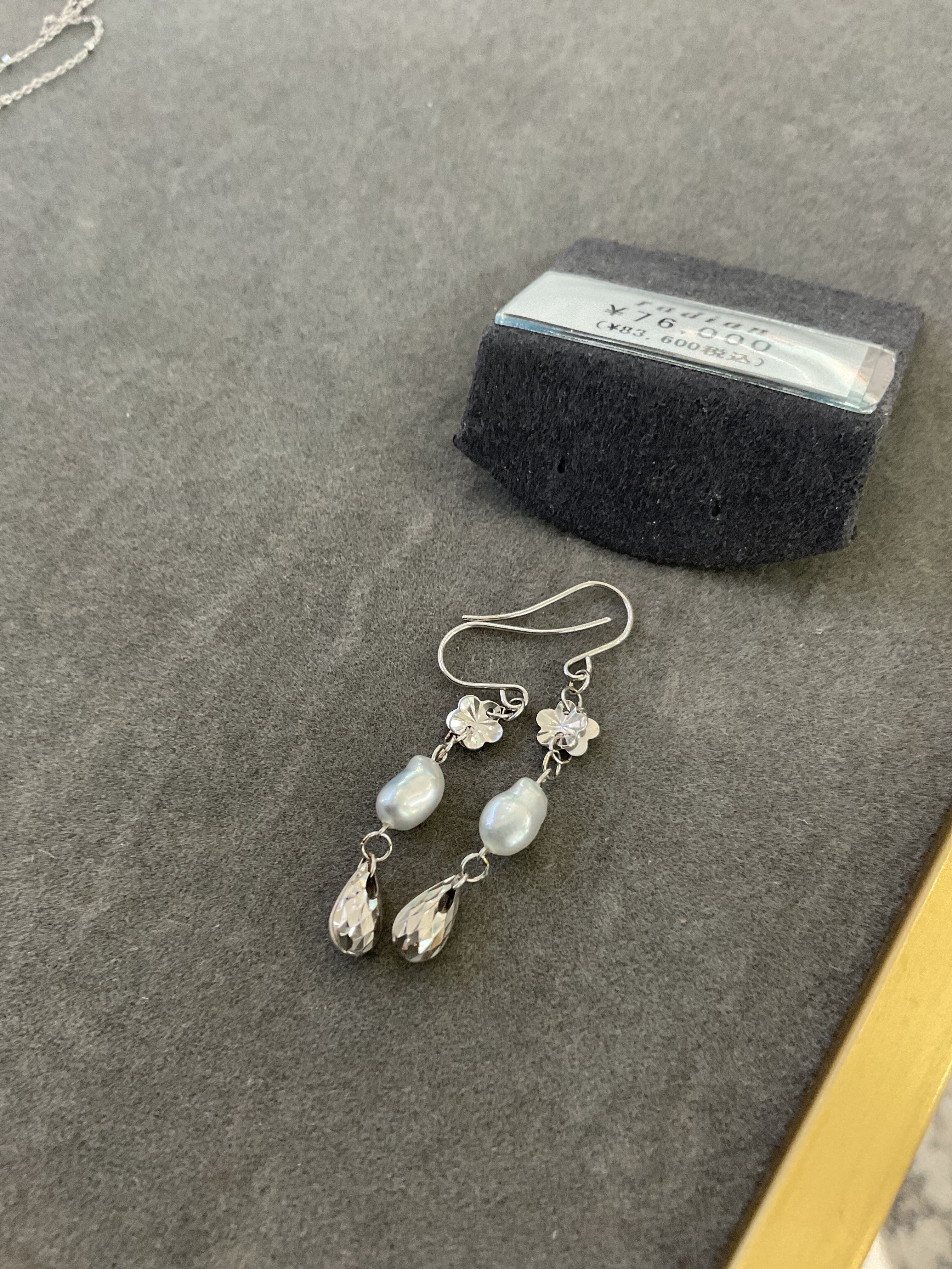 K18ホワイトゴールドケシパールフラワー型ピアス