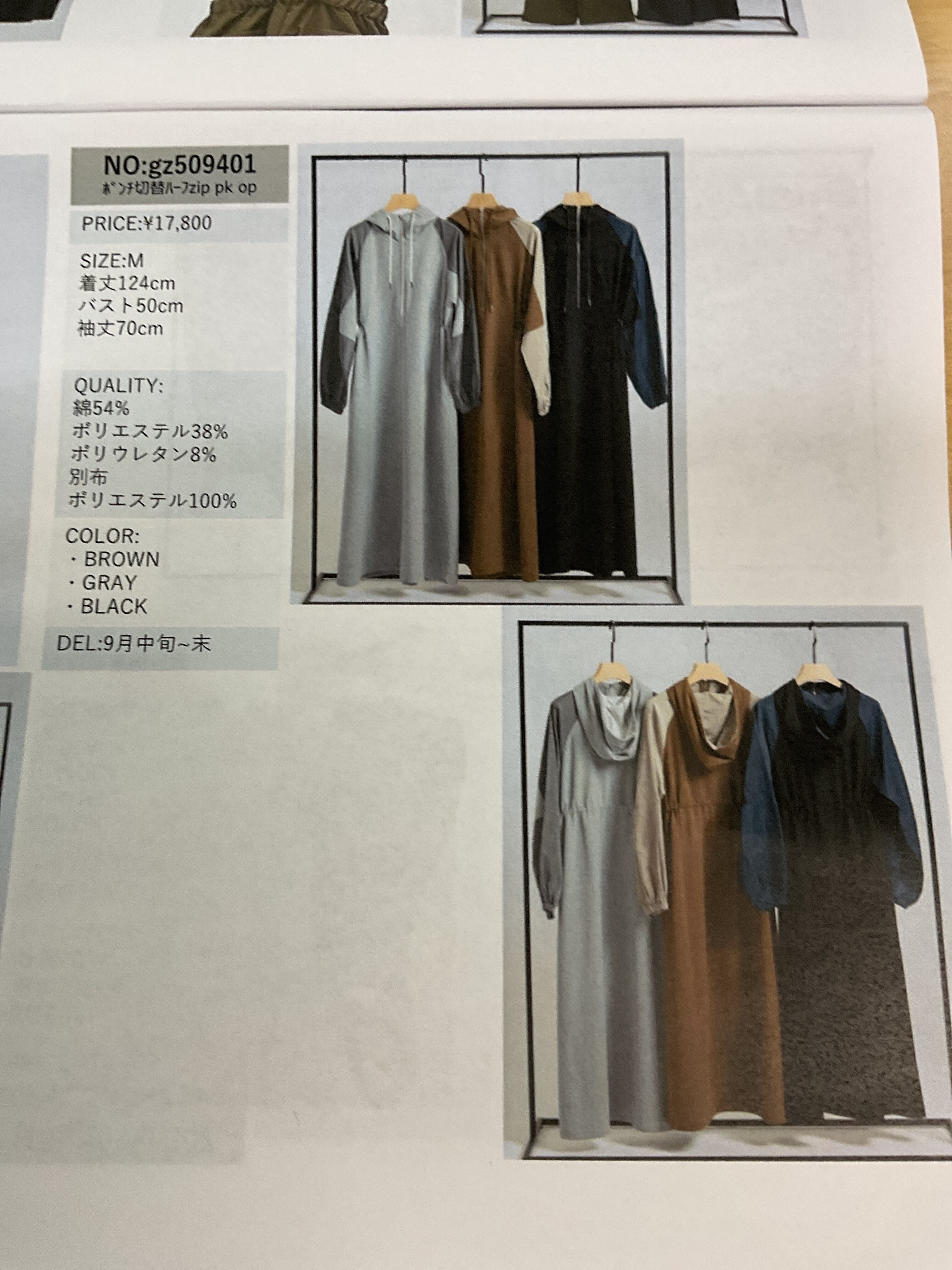 33℃ポンチ切り替えハーフジップパーカーワンピ〇全3色