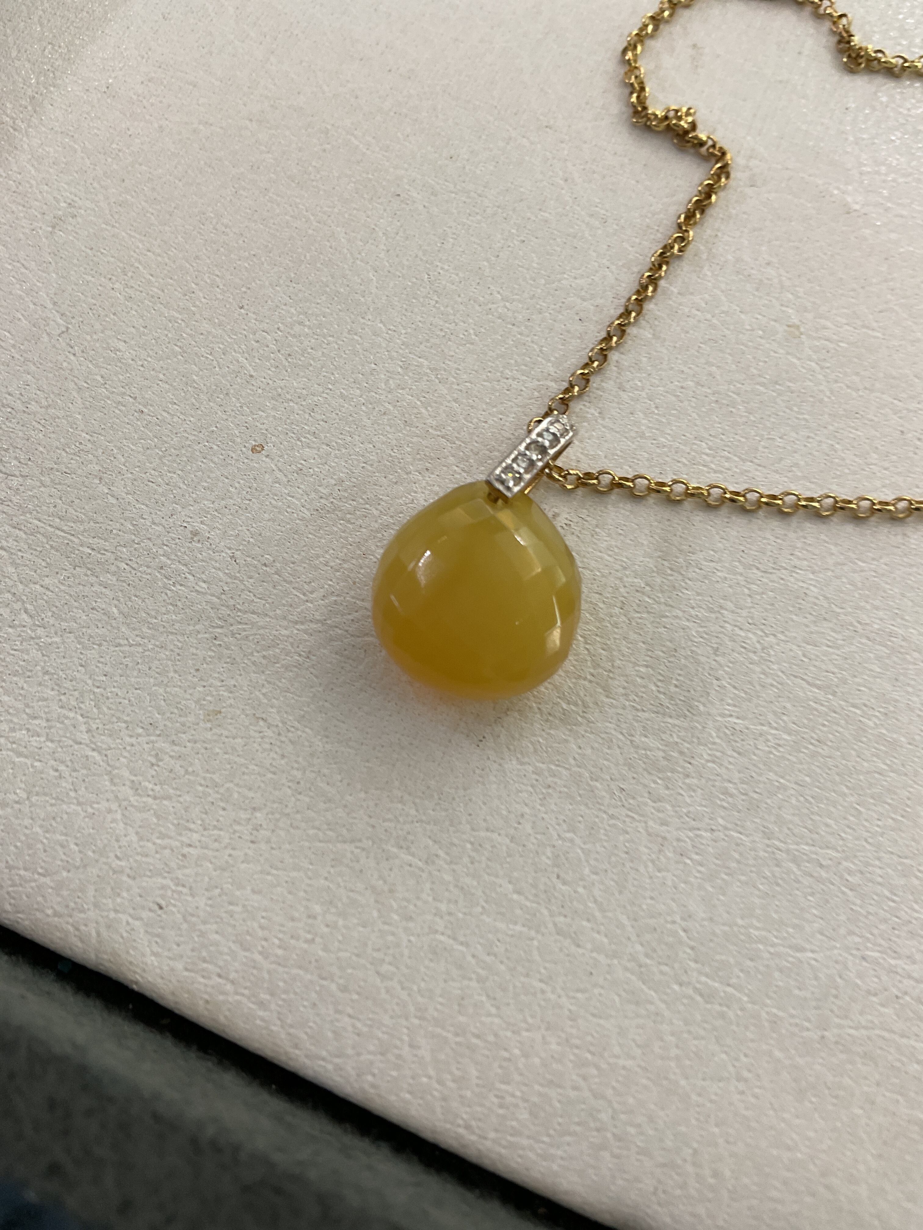 イエローカルセドニー×ダイヤペンダントトップ