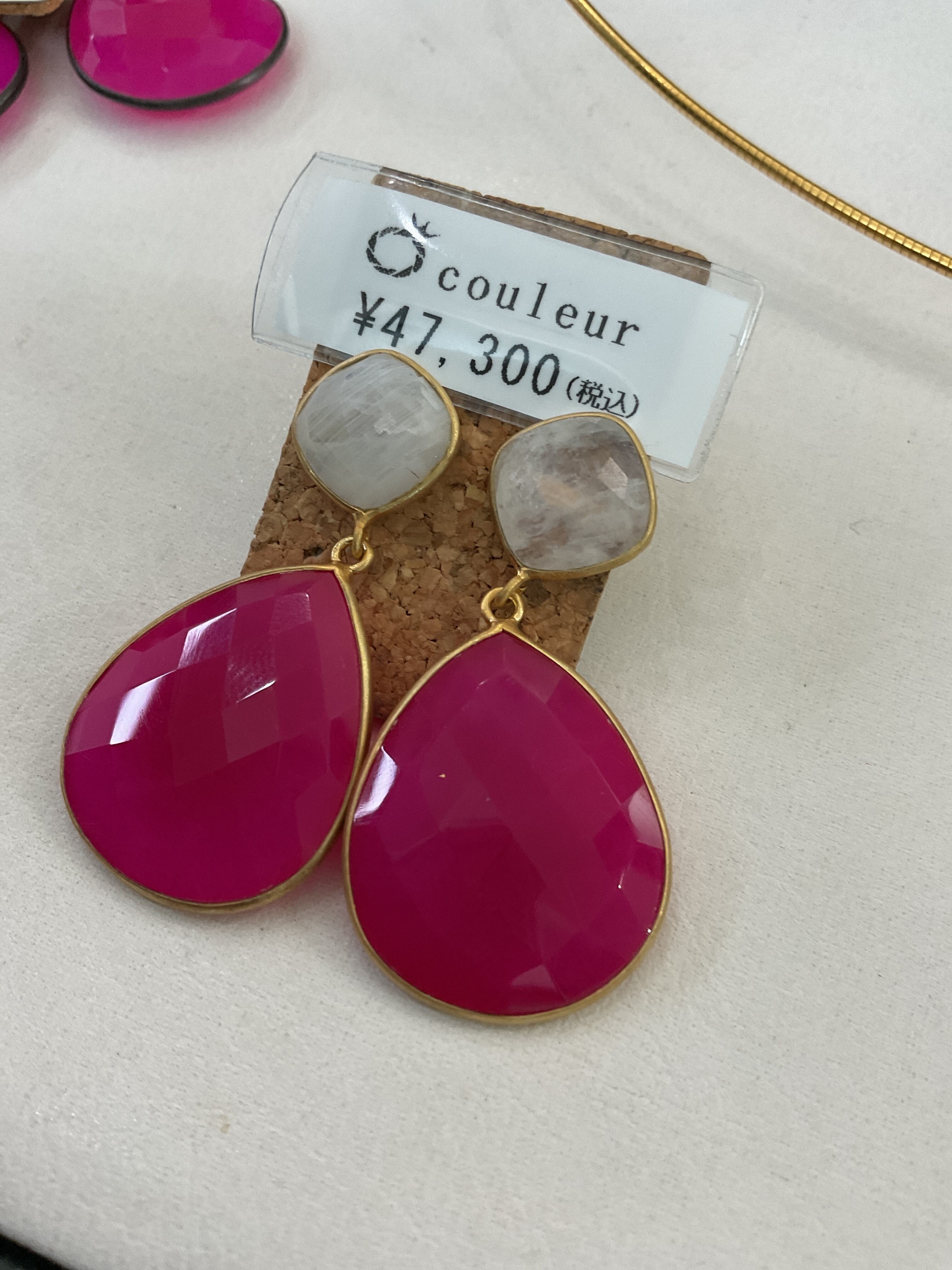フューシャーカルセドニー×ムーンストーンピアス