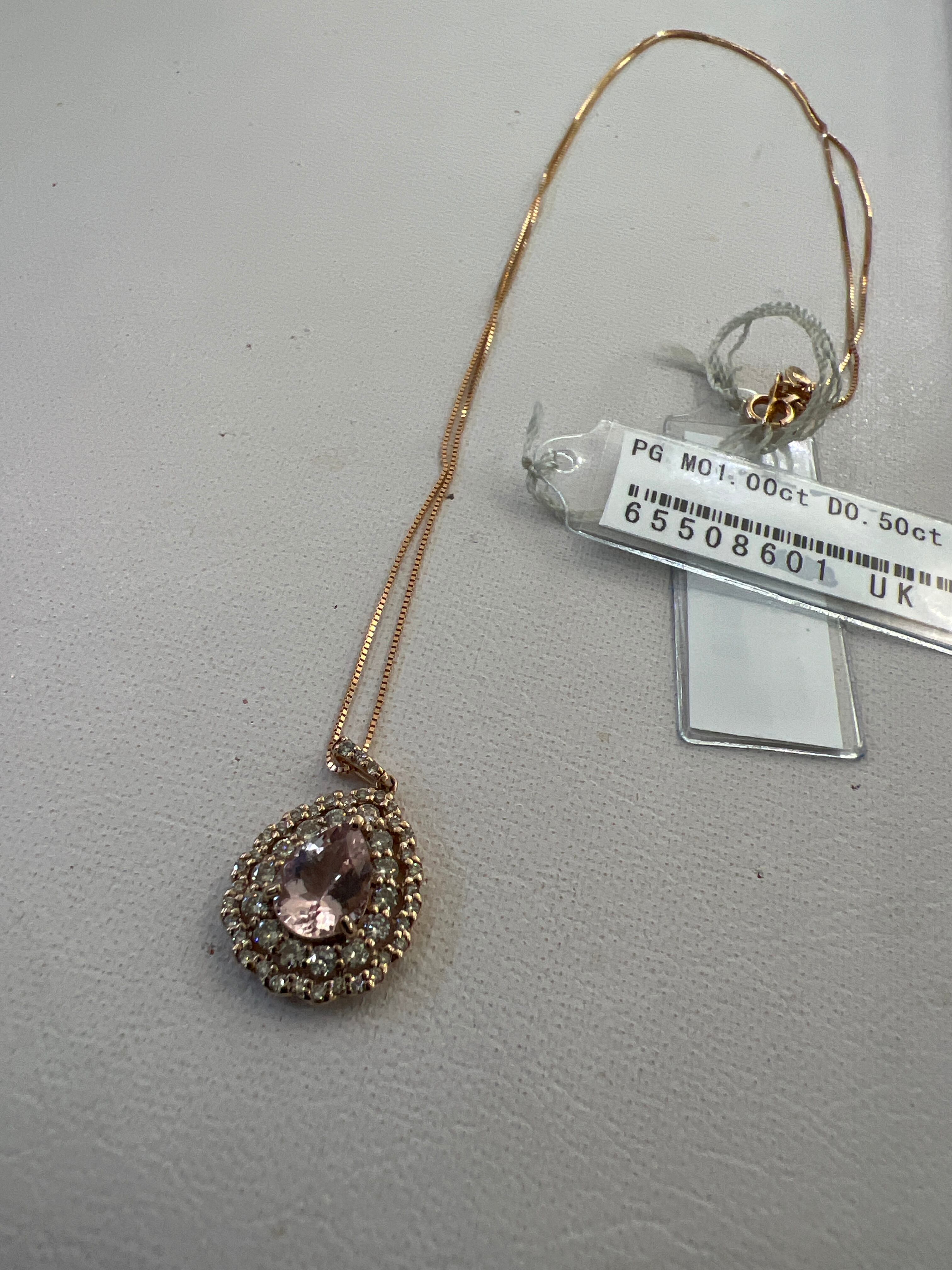 モルガナイト1.0ct ダイヤ0.5ct K18pgネックレス