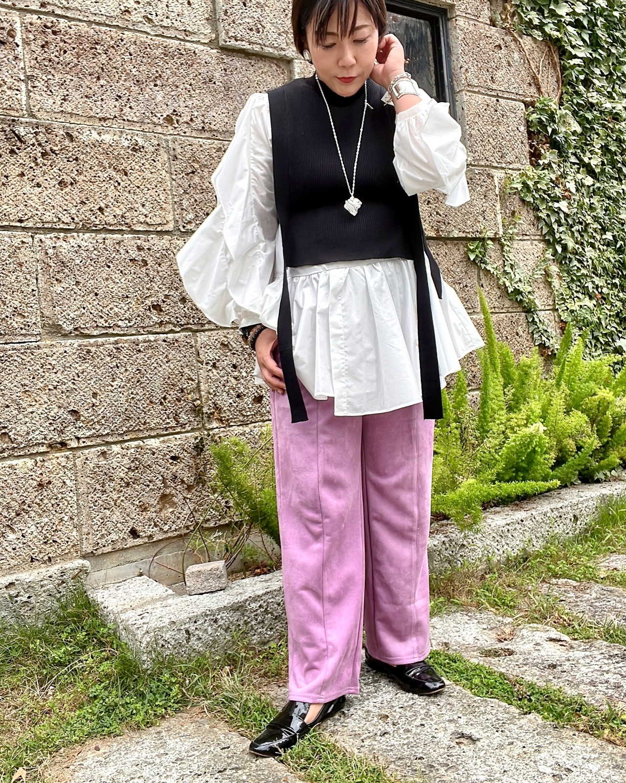 ミカーレフリルブラウス×ニットベストセット