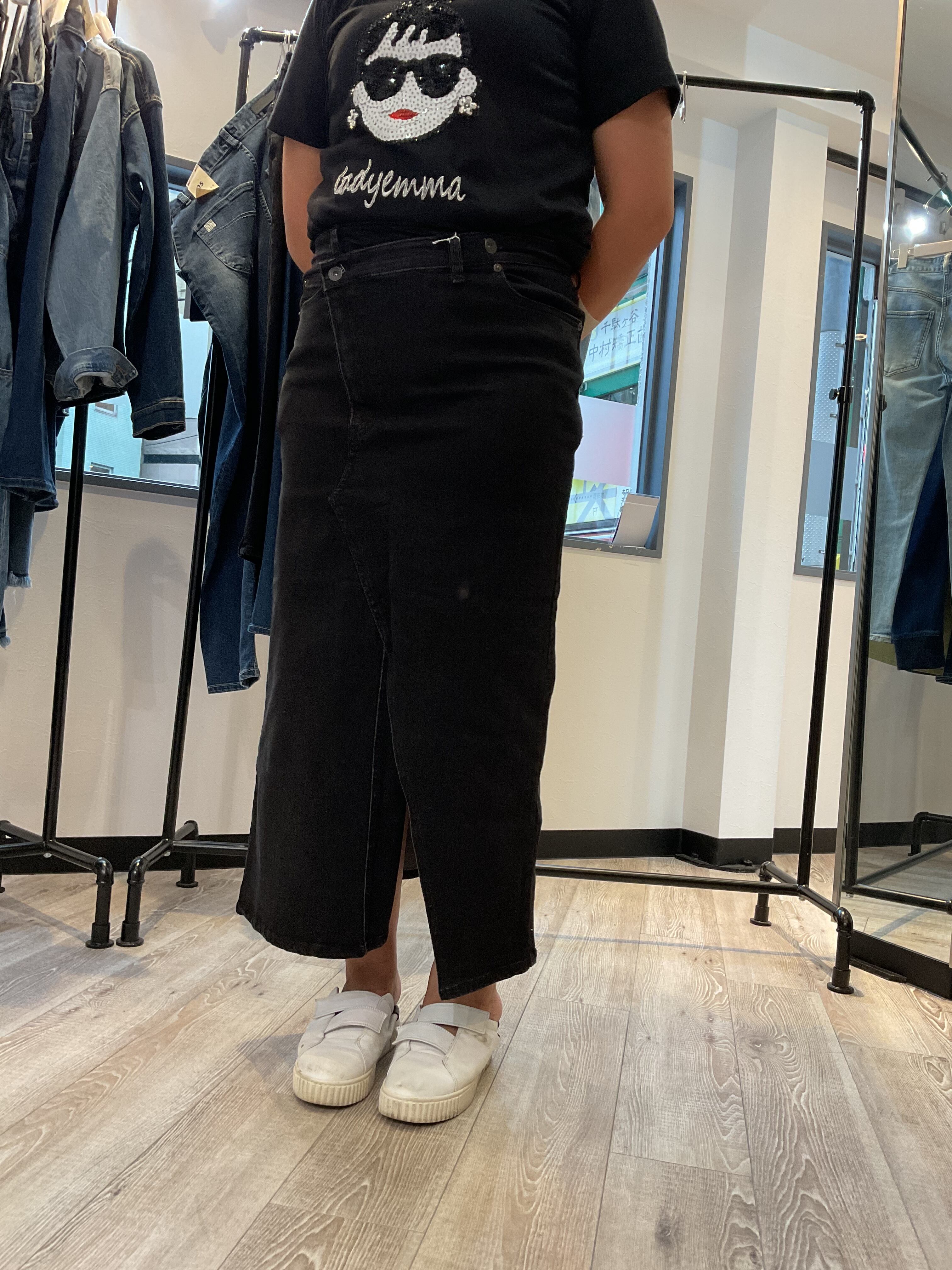 インディマークスリットデニムスカート○28ブラック