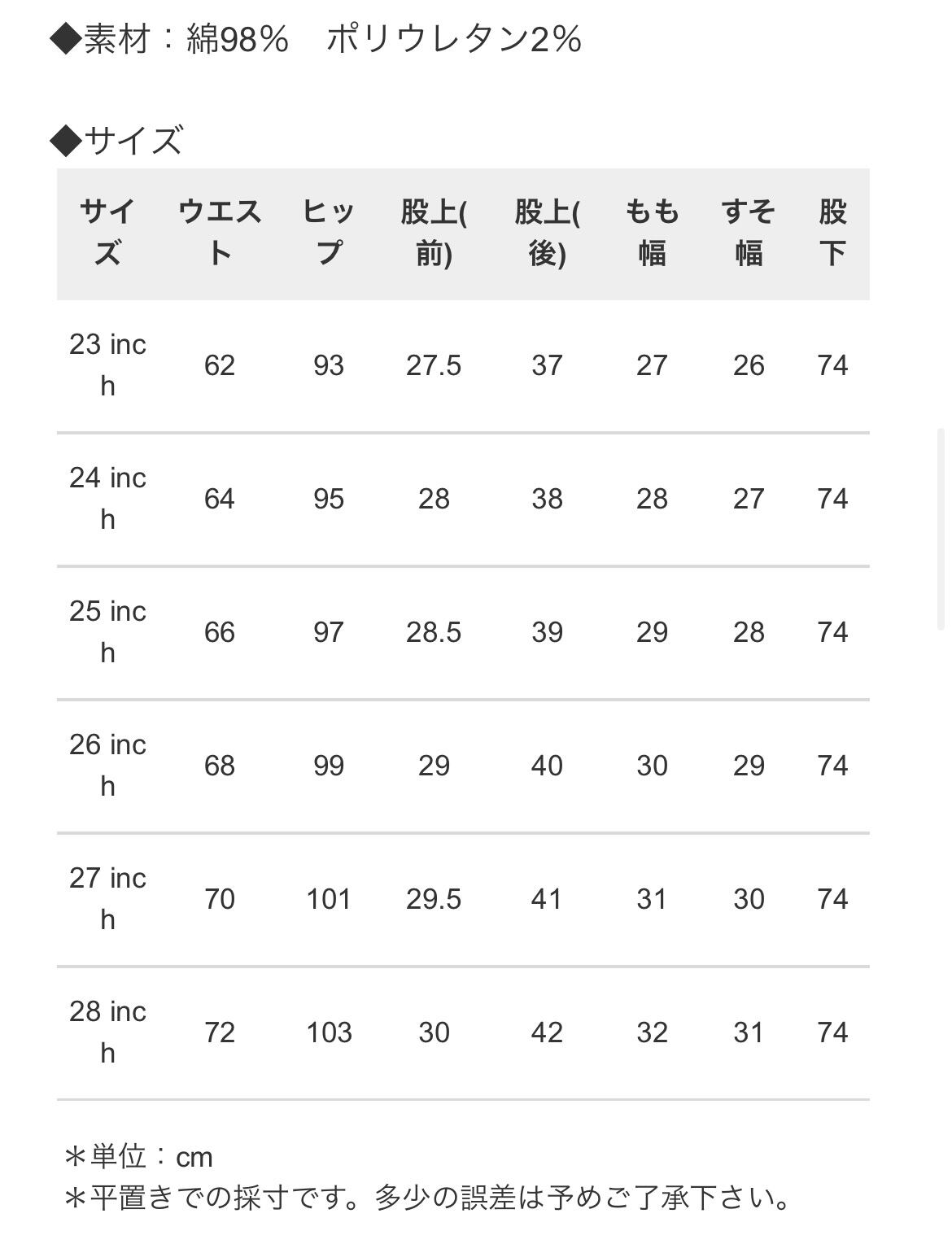 サイズは備考欄に