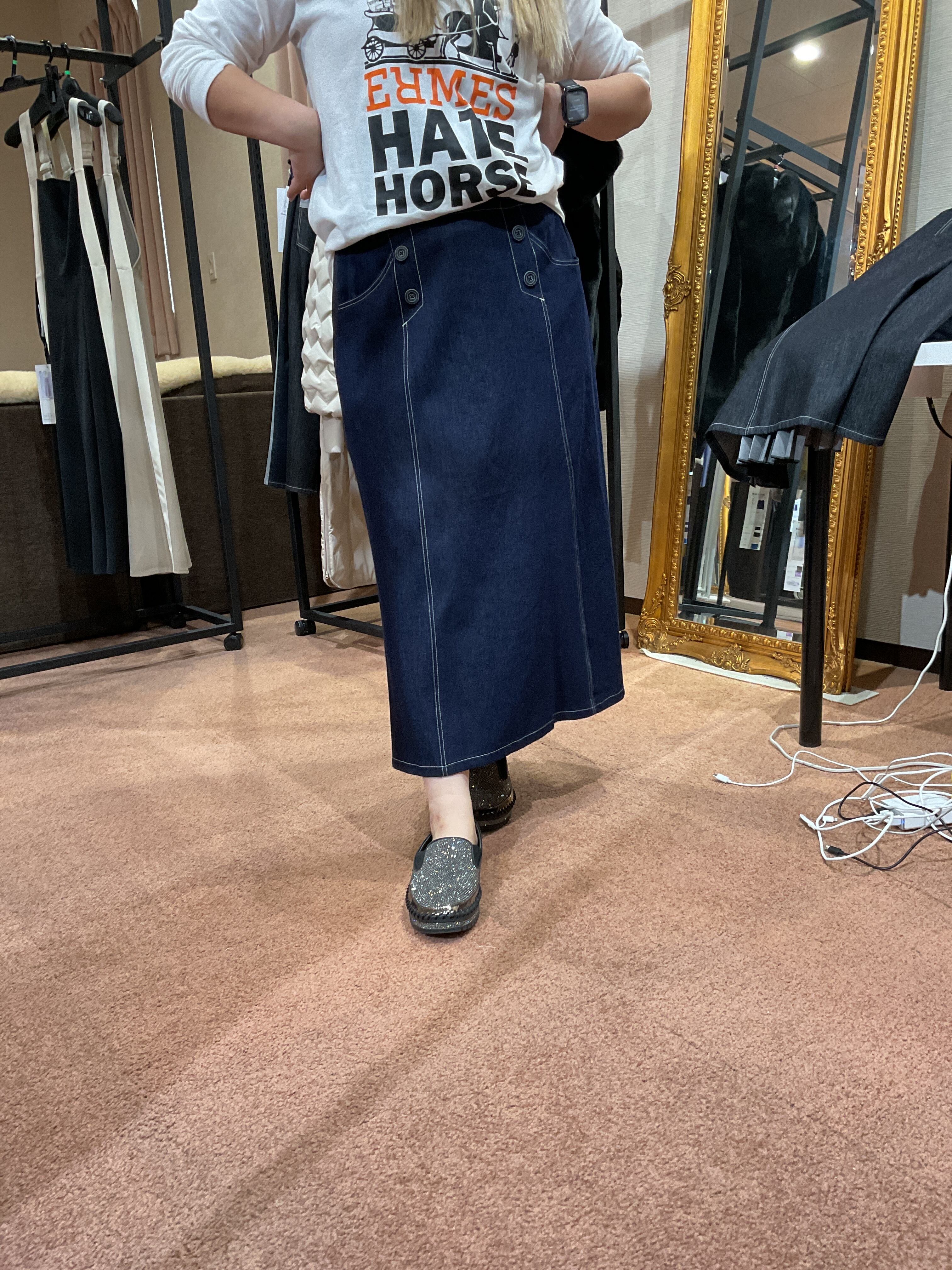 ダンガリーバックプリーツスカート○インディゴ38