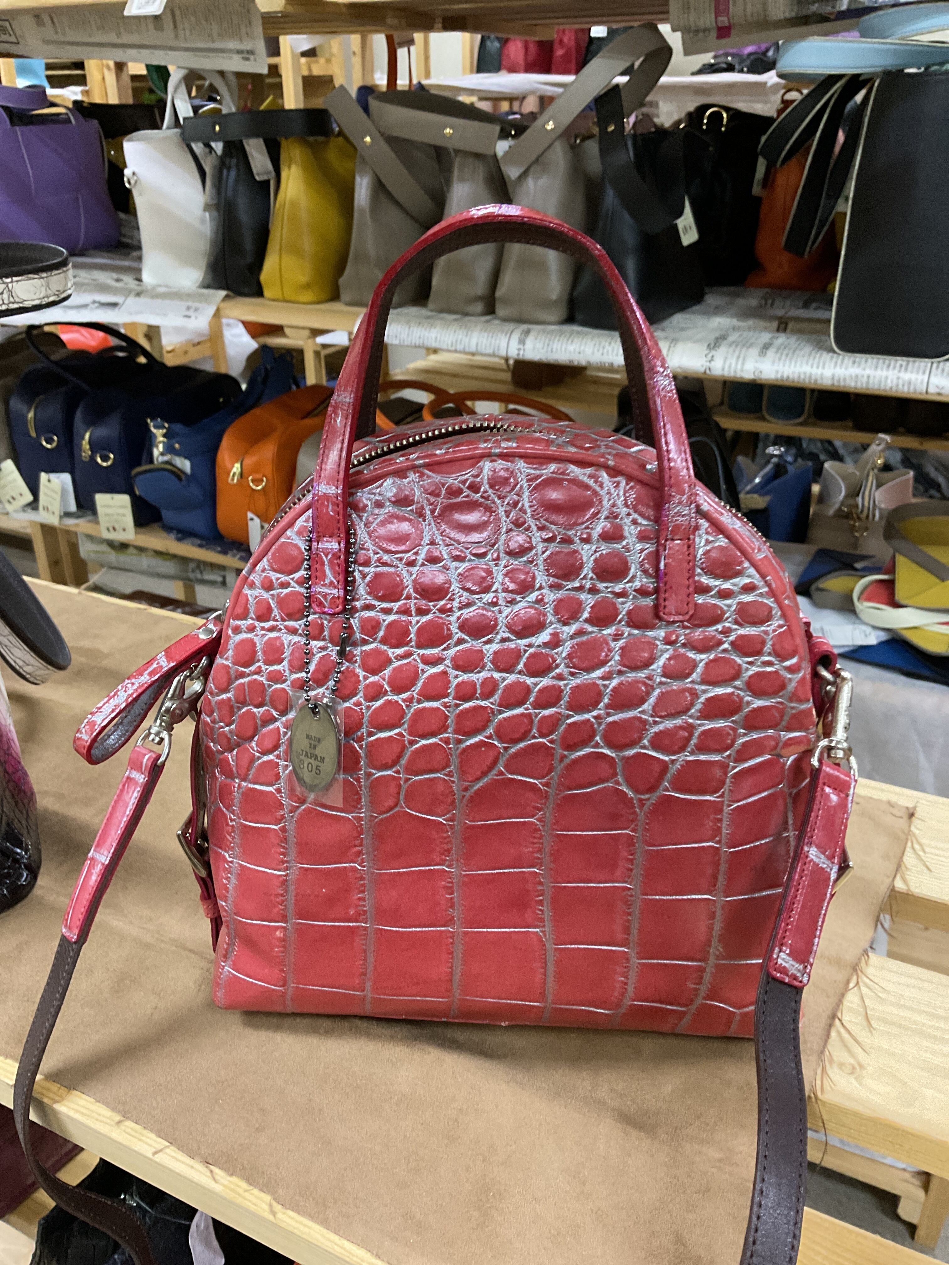 日本製クロコショルダーバッグ○レッド