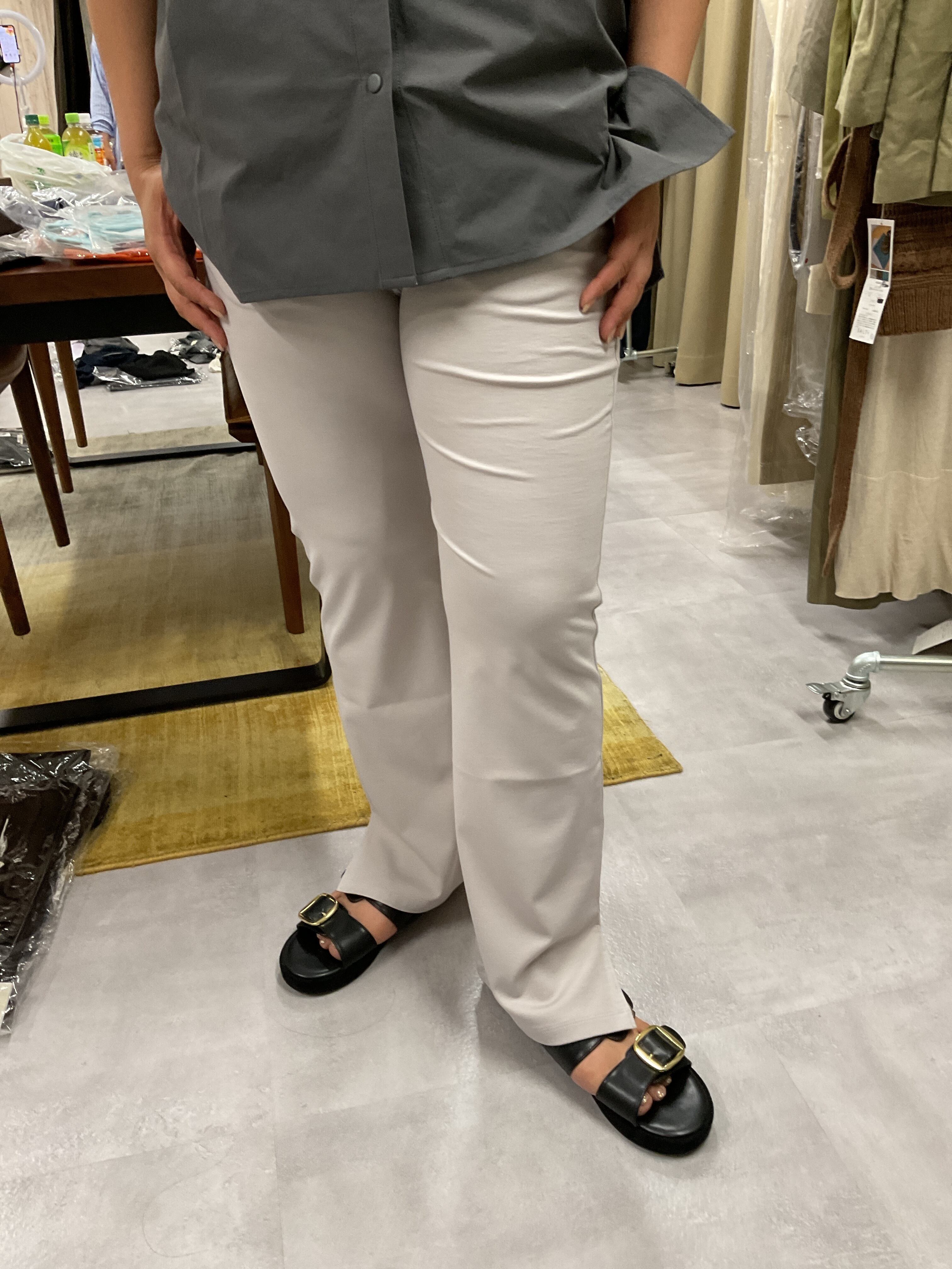 横スリットパンツ/グレー