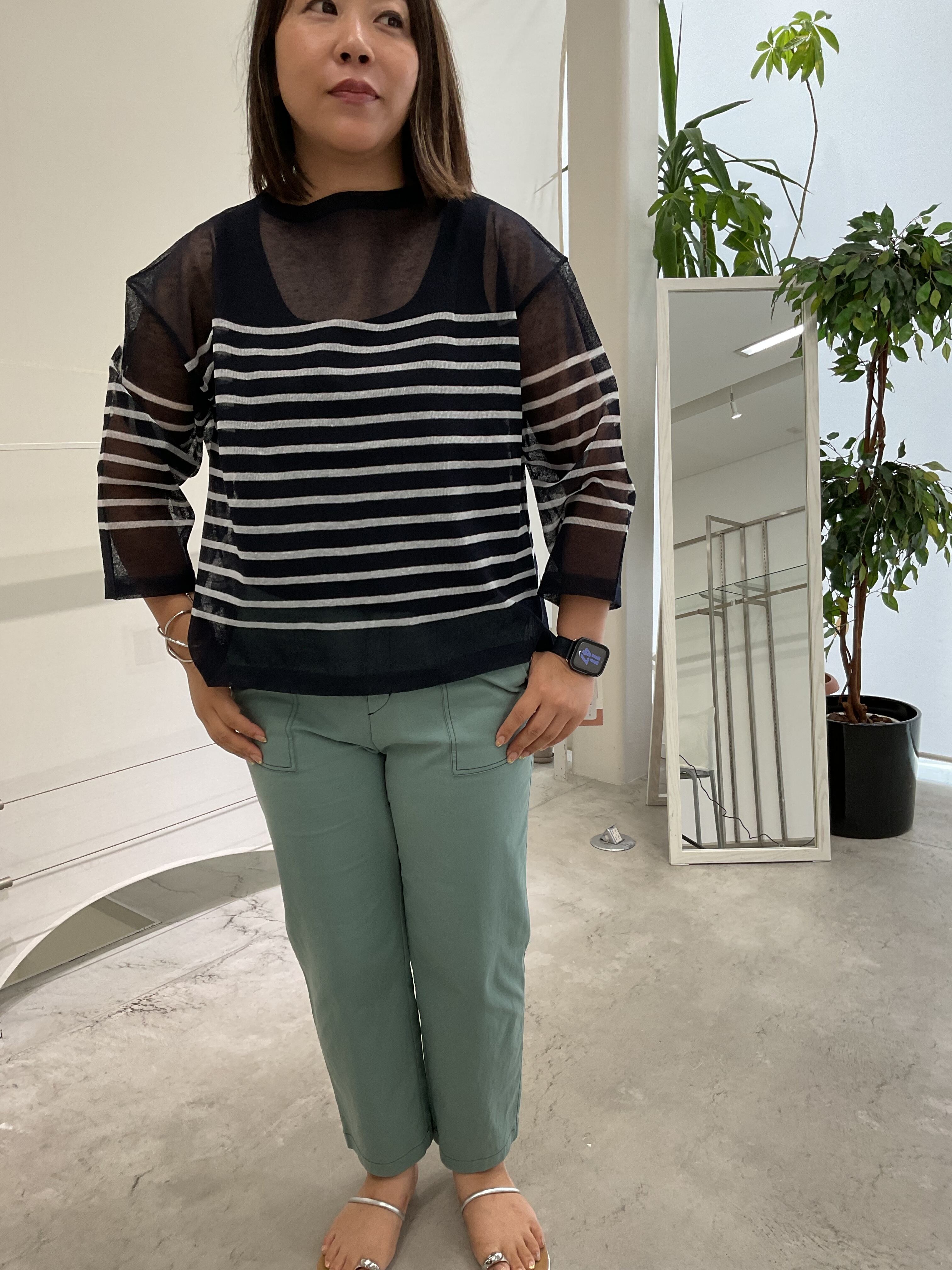 コムアンファム〇シアーボーダーニット〇ネイビー