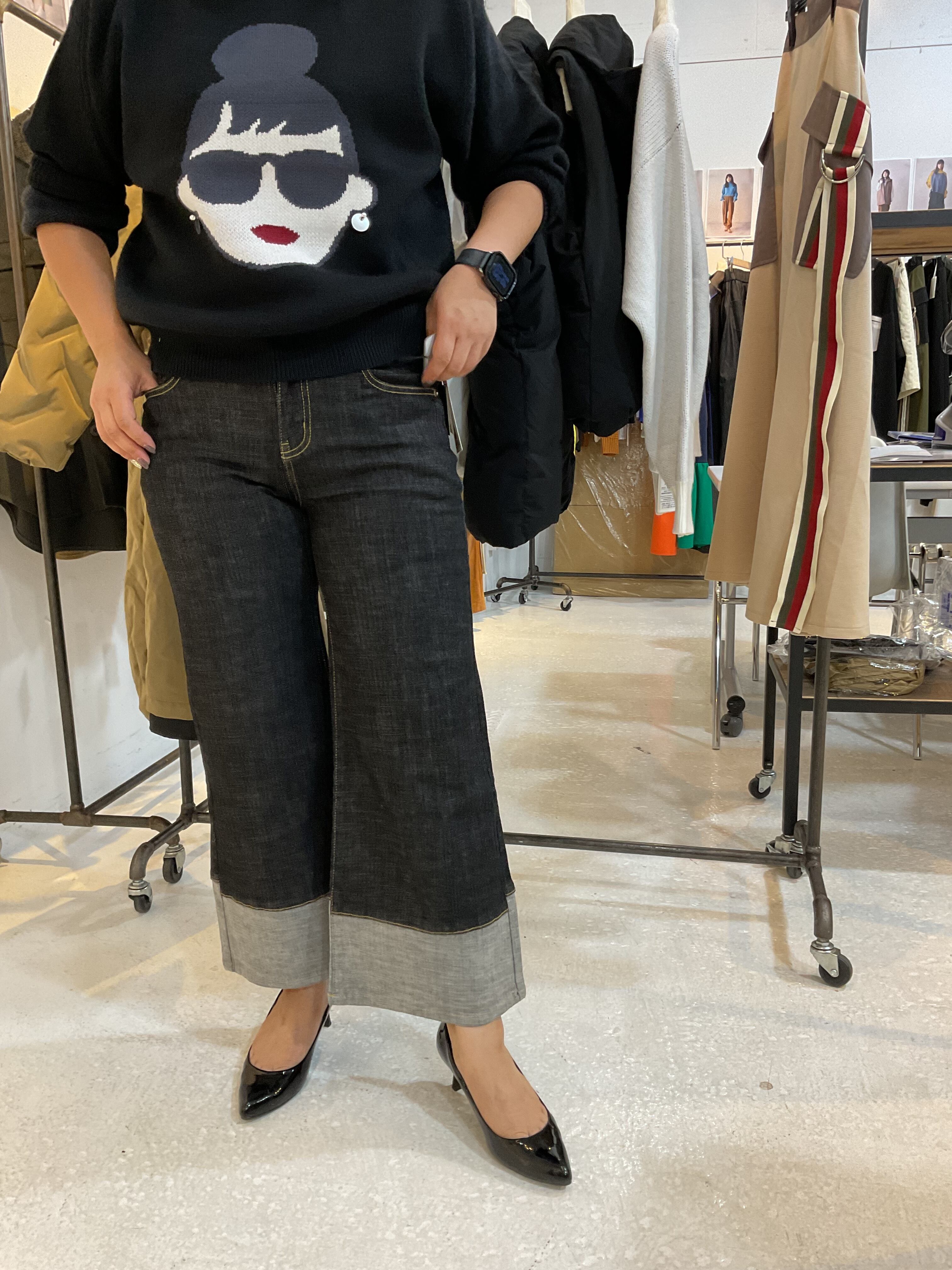 INDIMARK折り返しワイドデニムパンツ○ブラック